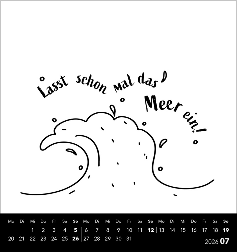Jedes Kalenderblatt ist so gestaltet, dass es einfach abzutrennen ist. Somit können Sie jeden Monat eine Postkarte mit einem schönen Spruch versenden oder verschenken.