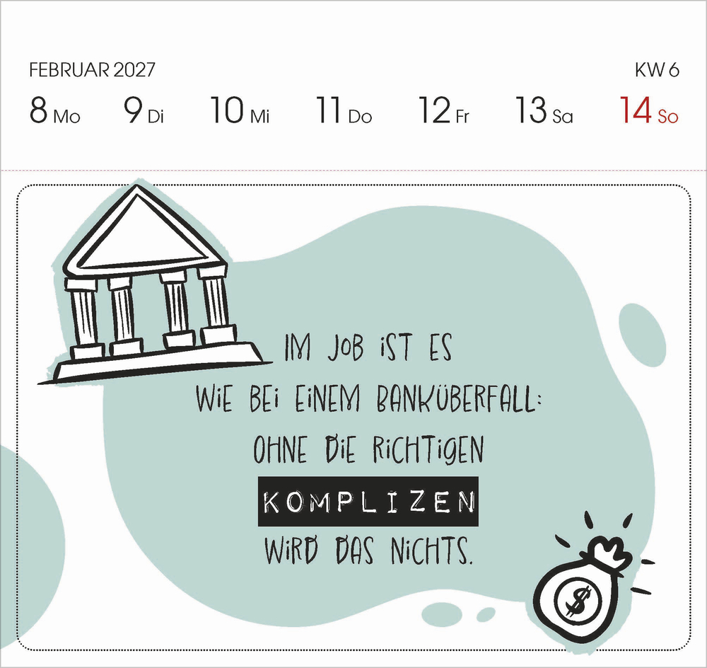 • Format: 17 x 16 cm; Wochenkalender mit 53 einzigartigen Sprüchen