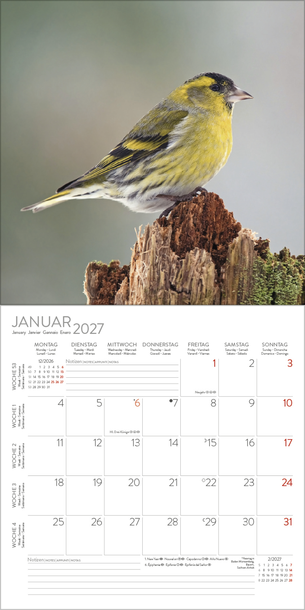 Welche Freude ist es, Vögel im Garten oder in der freien Natur ausgiebig zu beobachten! Wer das Erlebnis ausdehnen möchte, hat mit diesem Kalender die Gelegenheit, die schönsten Vertreter unserer einheimischen Vogelwelt zu Hause in voller Pracht und von Nahem zu bestaunen.