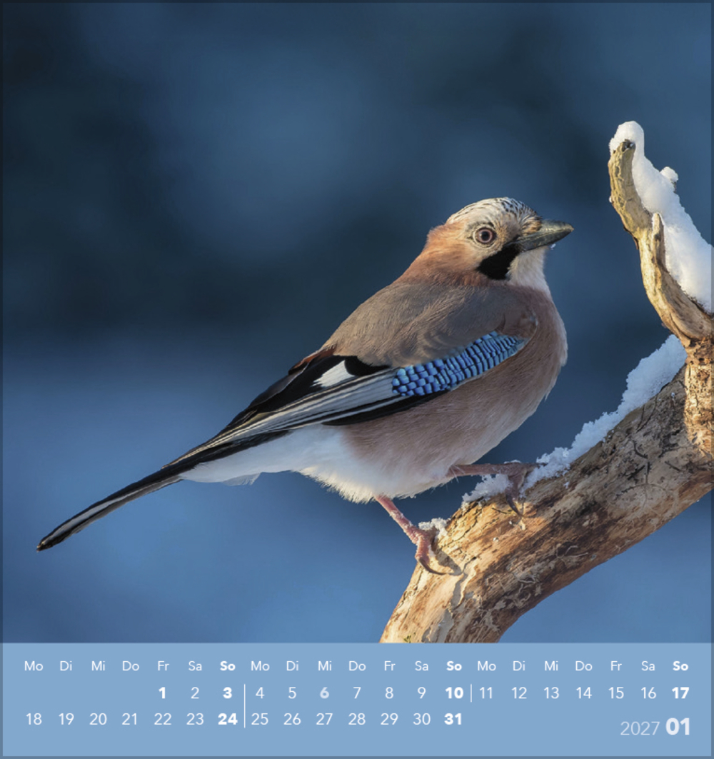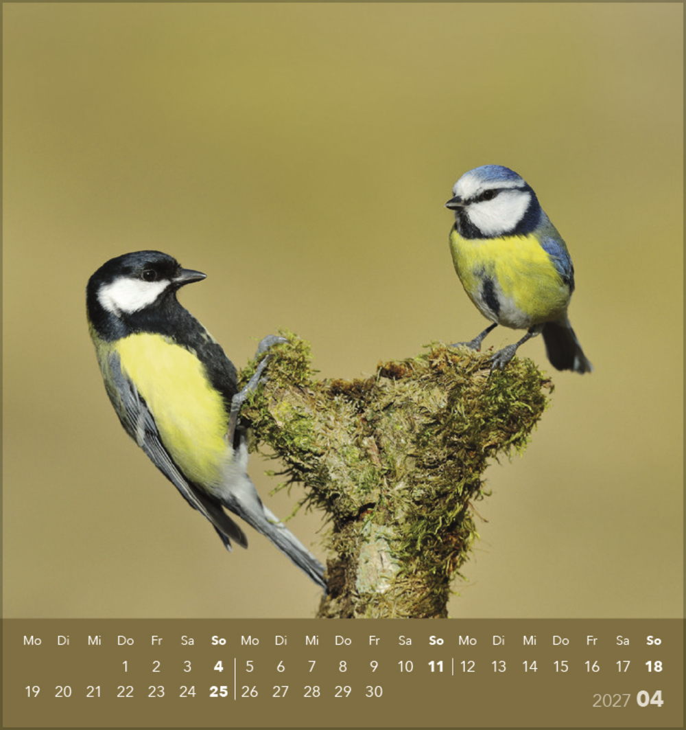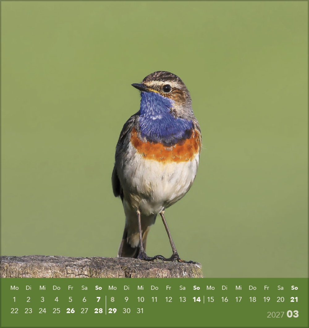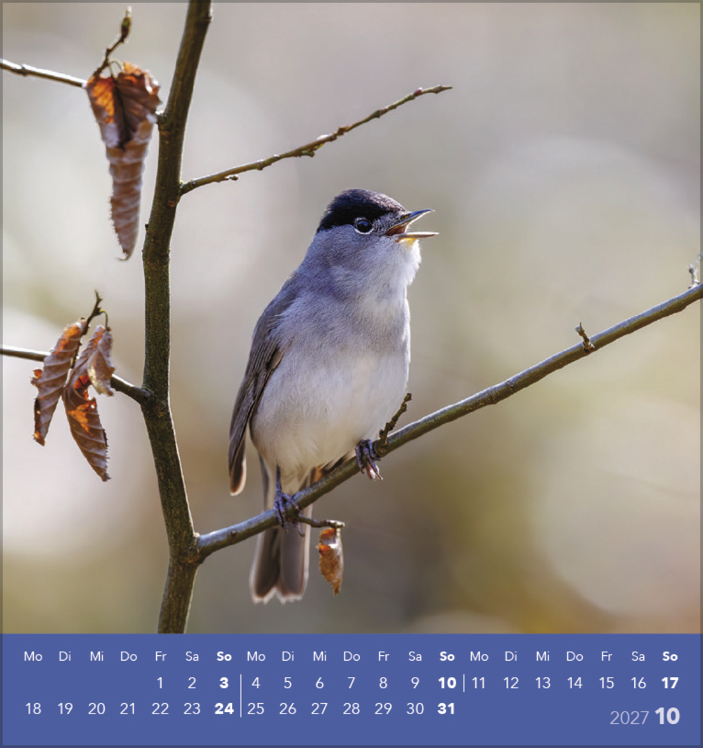 Aufstellbarer Postkartenkalender mit den schönsten Vertretern unserer heimischen Singvögel.