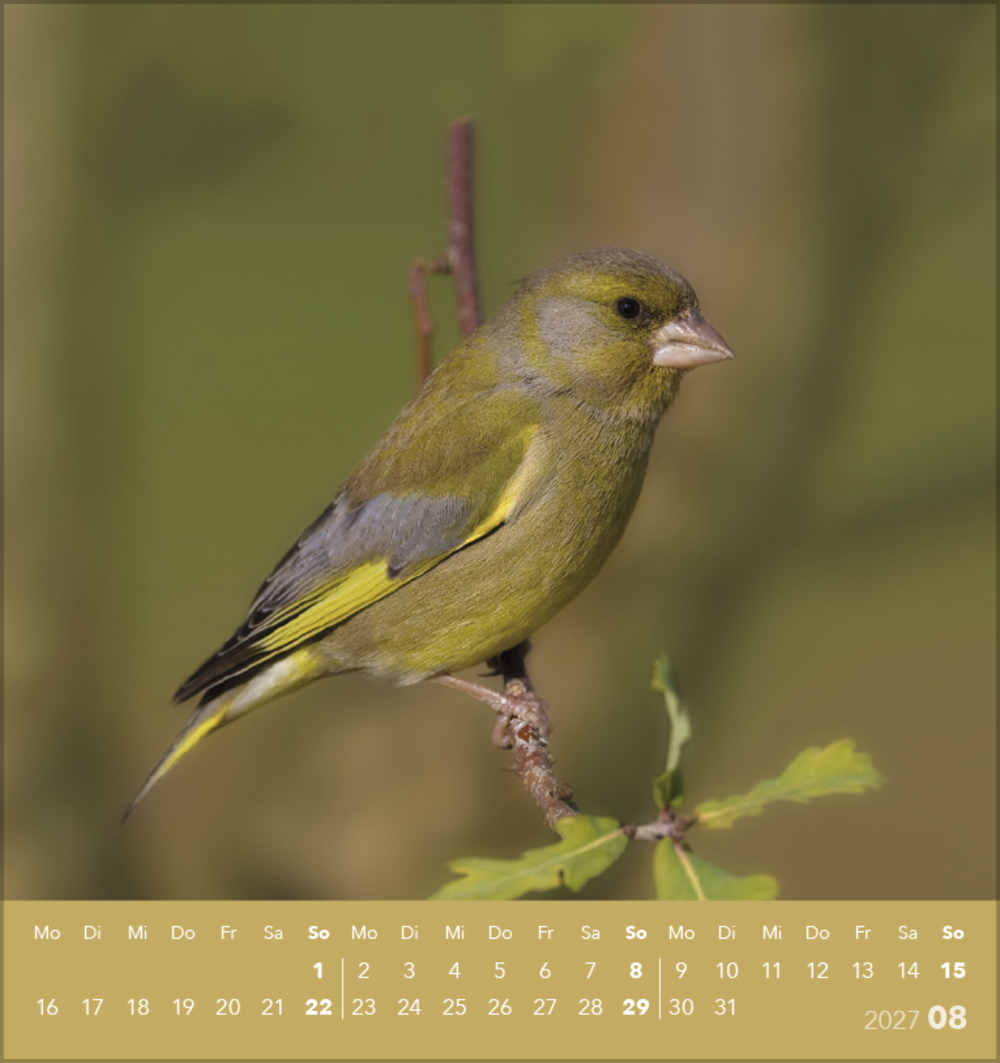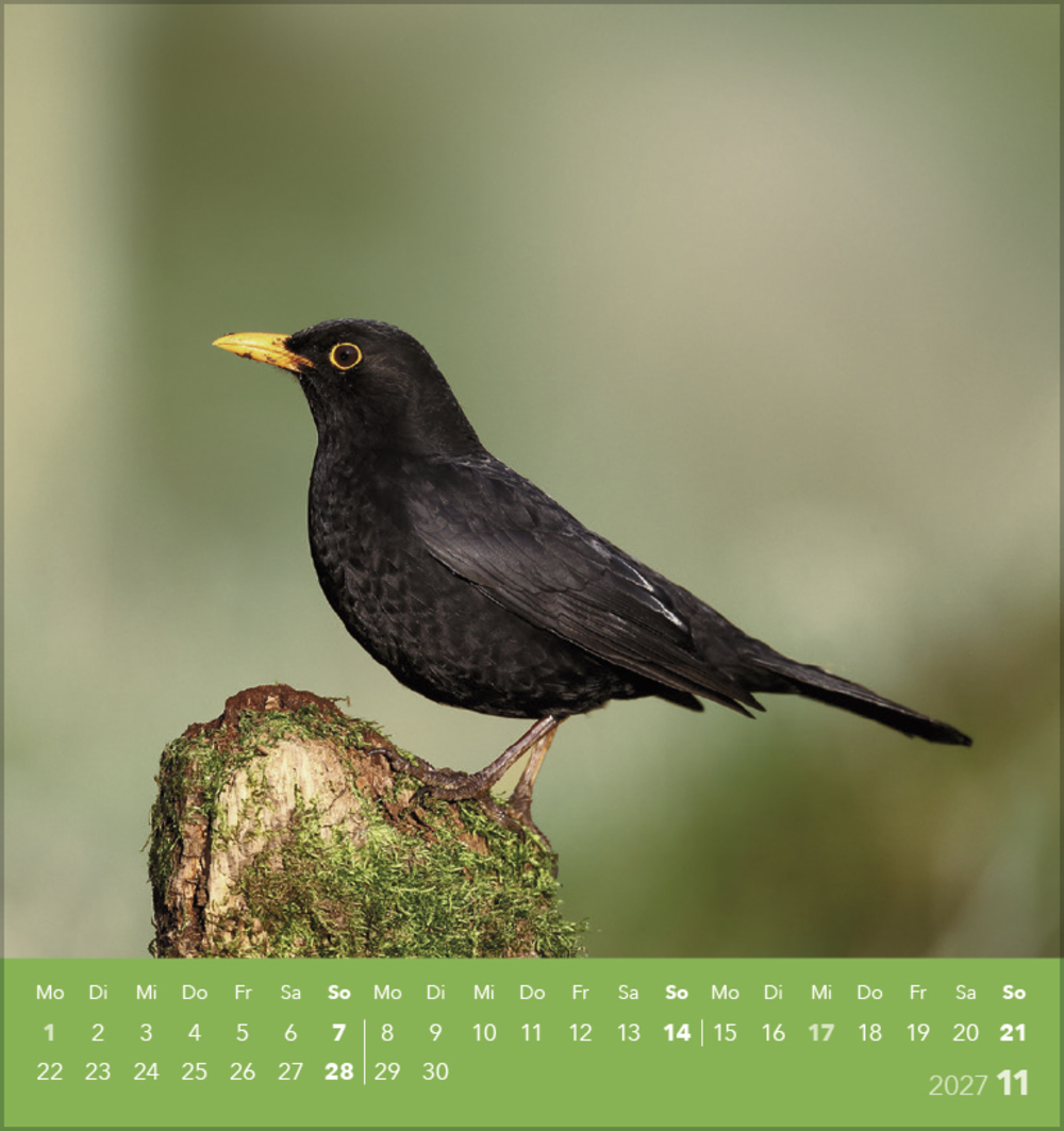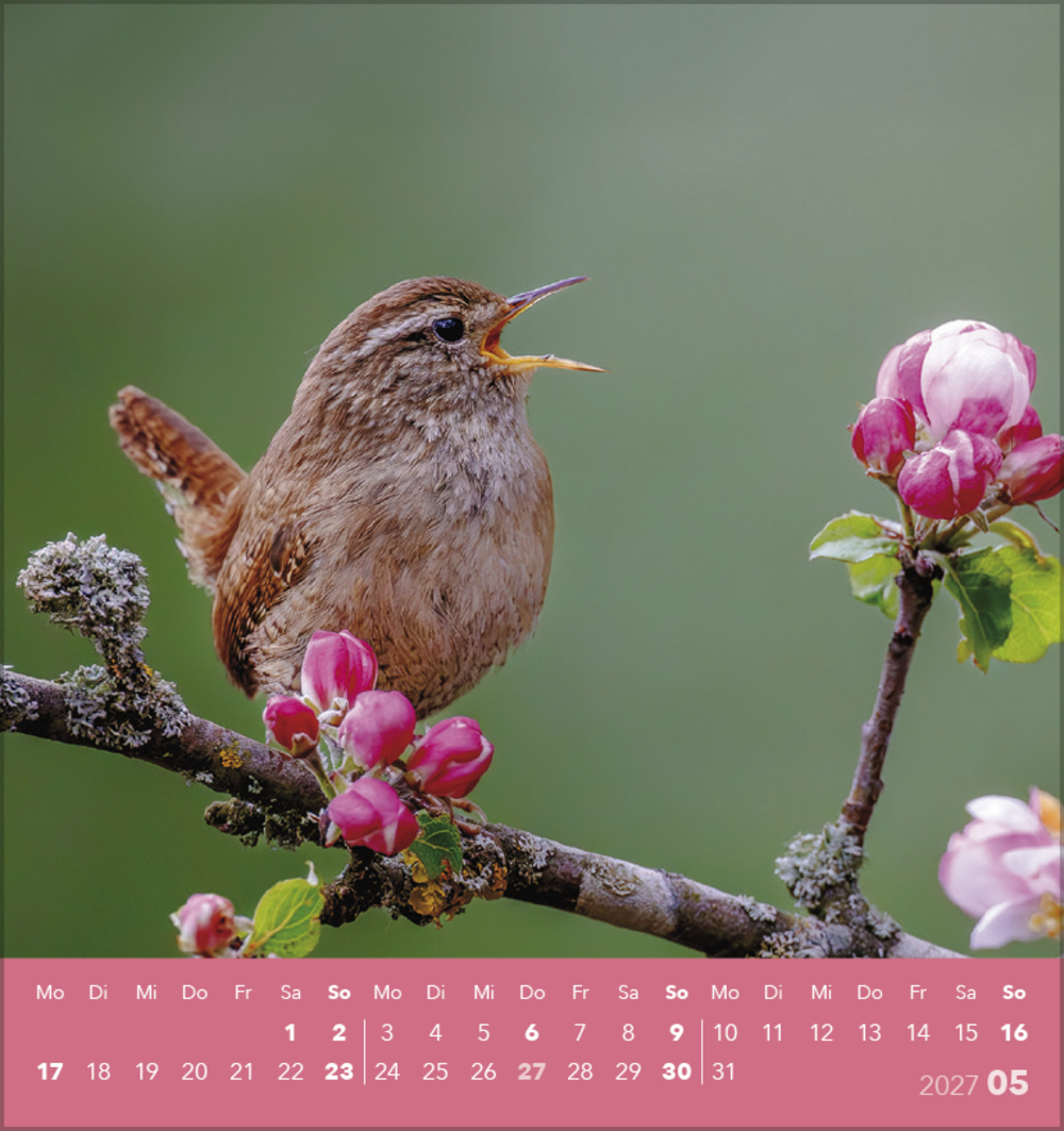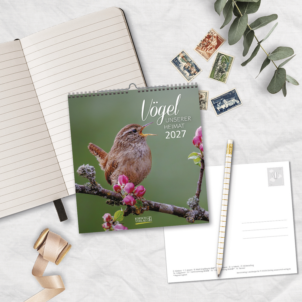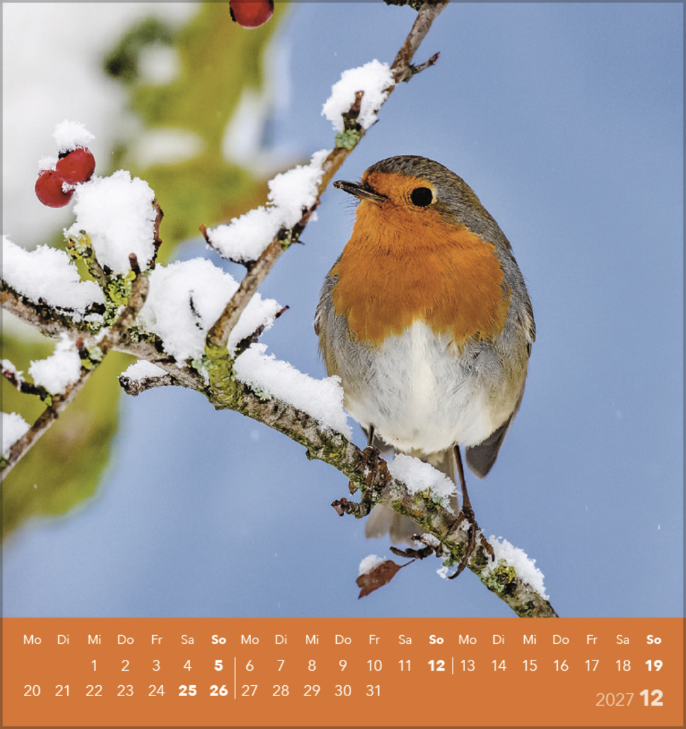 Aufstellbarer Postkartenkalender mit den schönsten Vertretern unserer heimischen Singvögel.