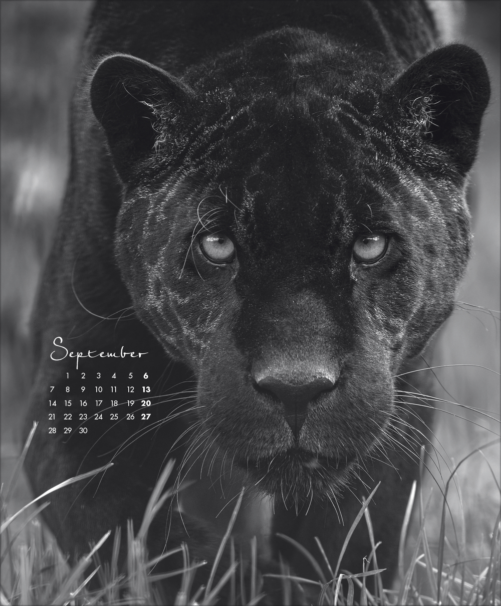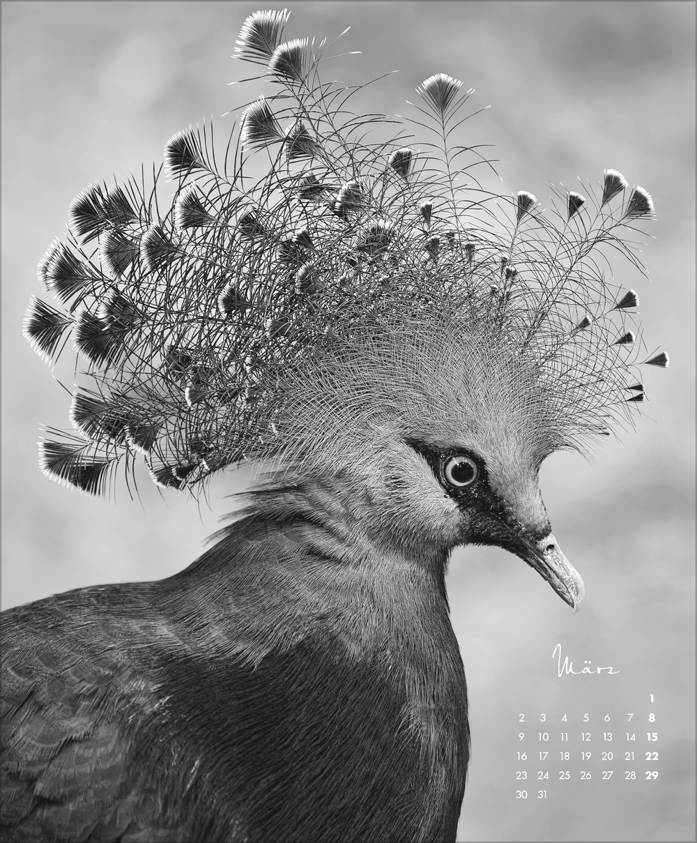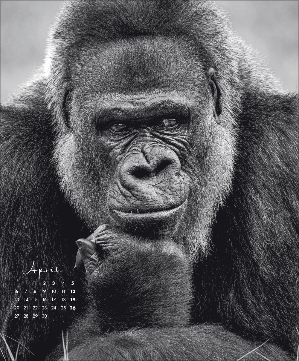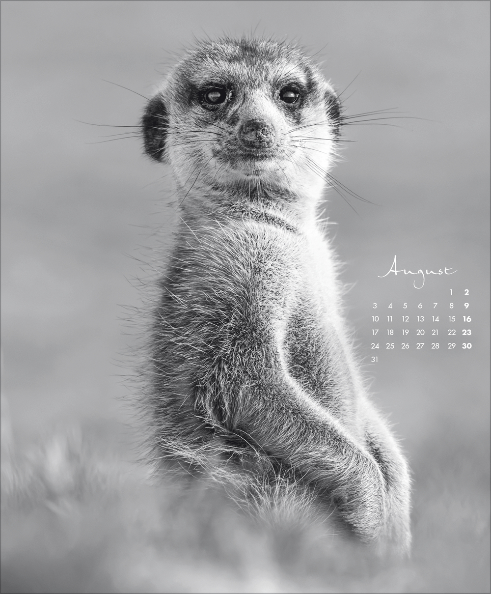 Auge in Auge mit wilden Tieren, das ist mit diesem Kalender möglich. Die Porträtaufnahmen kommen durch den Schwarz-Weiß-Look besonders gut zum Ausdruck und passen so auch perfekt zu jedem Einrichtungsstil. Das Kalendarium im Bild sorgt zusätzlich für einen modernen Look.
