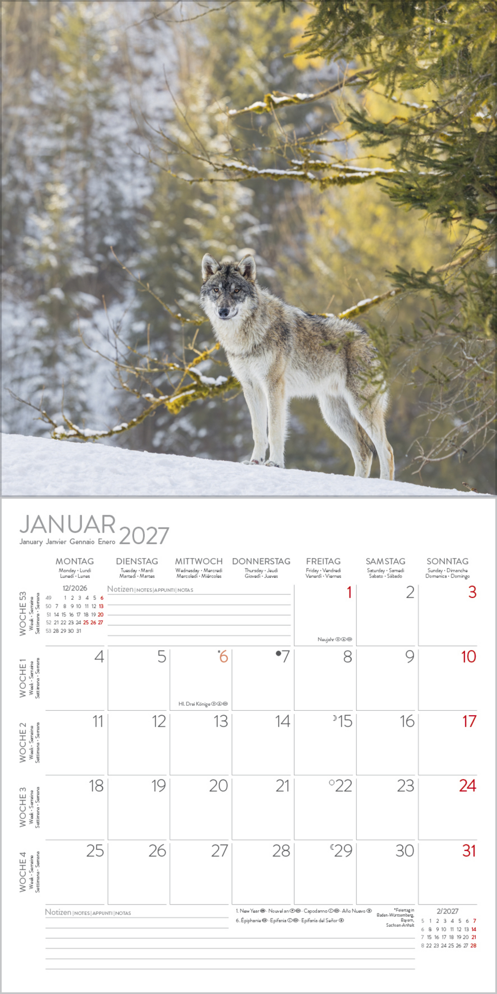 Wölfe ziehen uns mit ihrer geheimnisvollen Aura und ihrem faszinierenden Sozialverhalten magisch an. Die außergewöhnlichen Fotos in diesem Kalender zeigen wunderschöne Momentaufnahmen aus dem Leben der beeindruckenden Wildtiere.