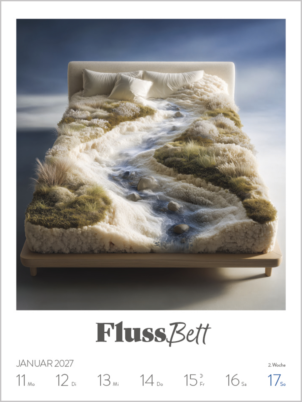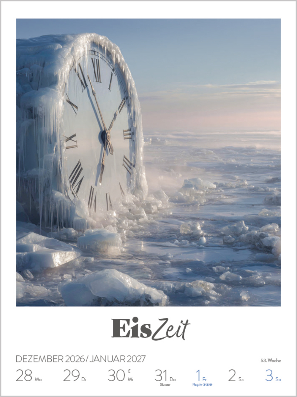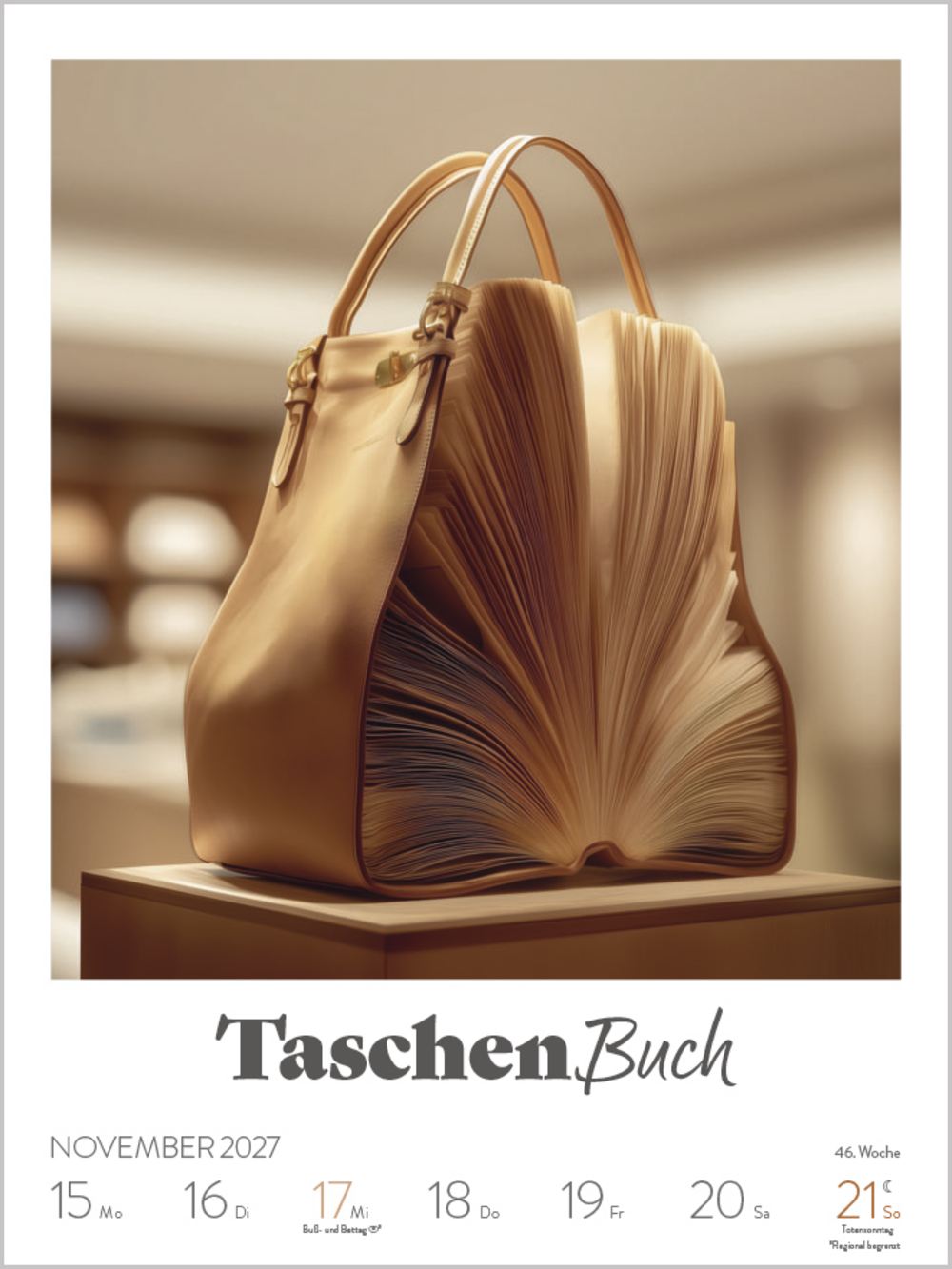 • Format: 24 x 32 cm; Wochenkalender mit 53 einzigartigen Ki-generierten Bildern und Typografie