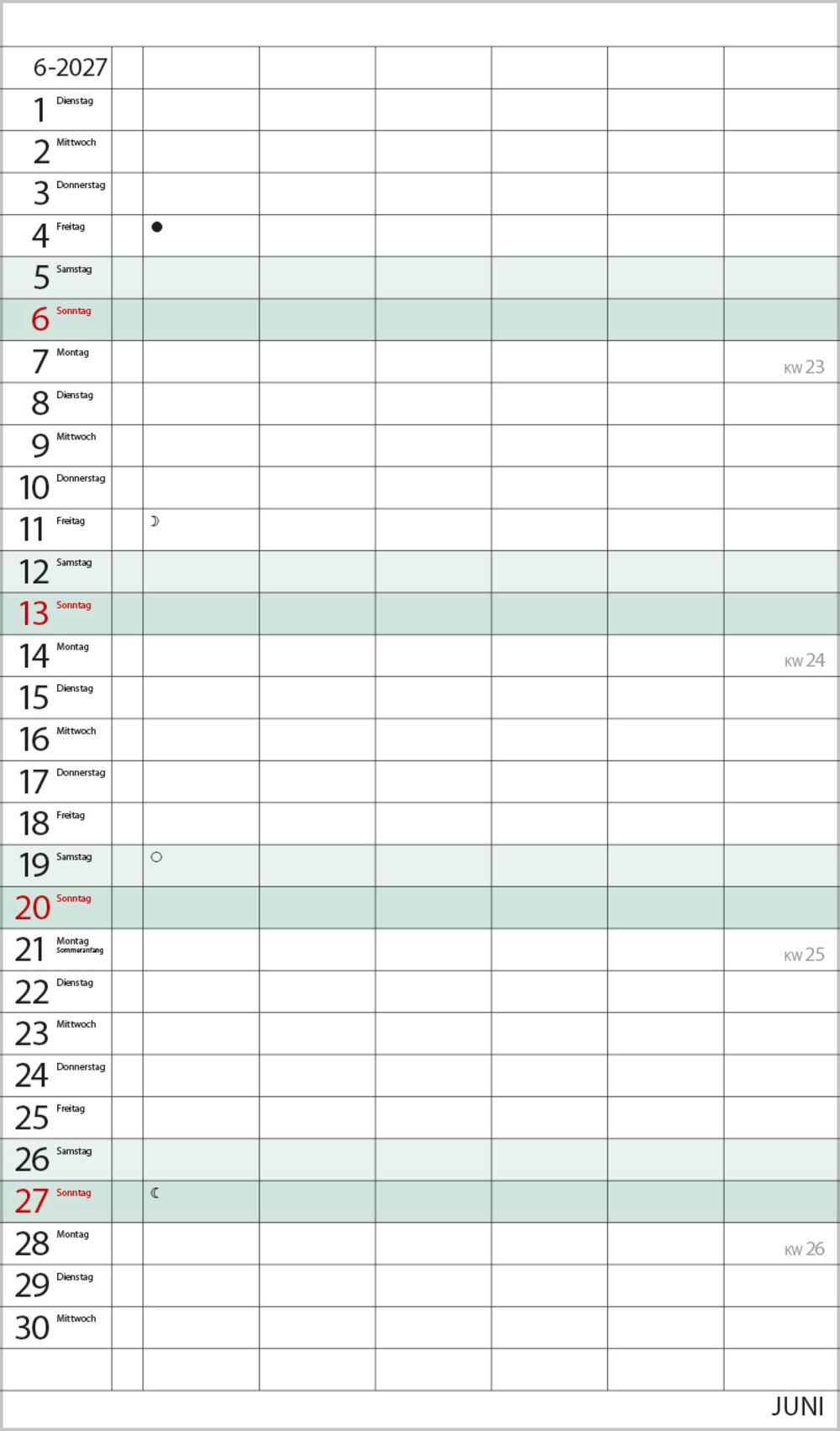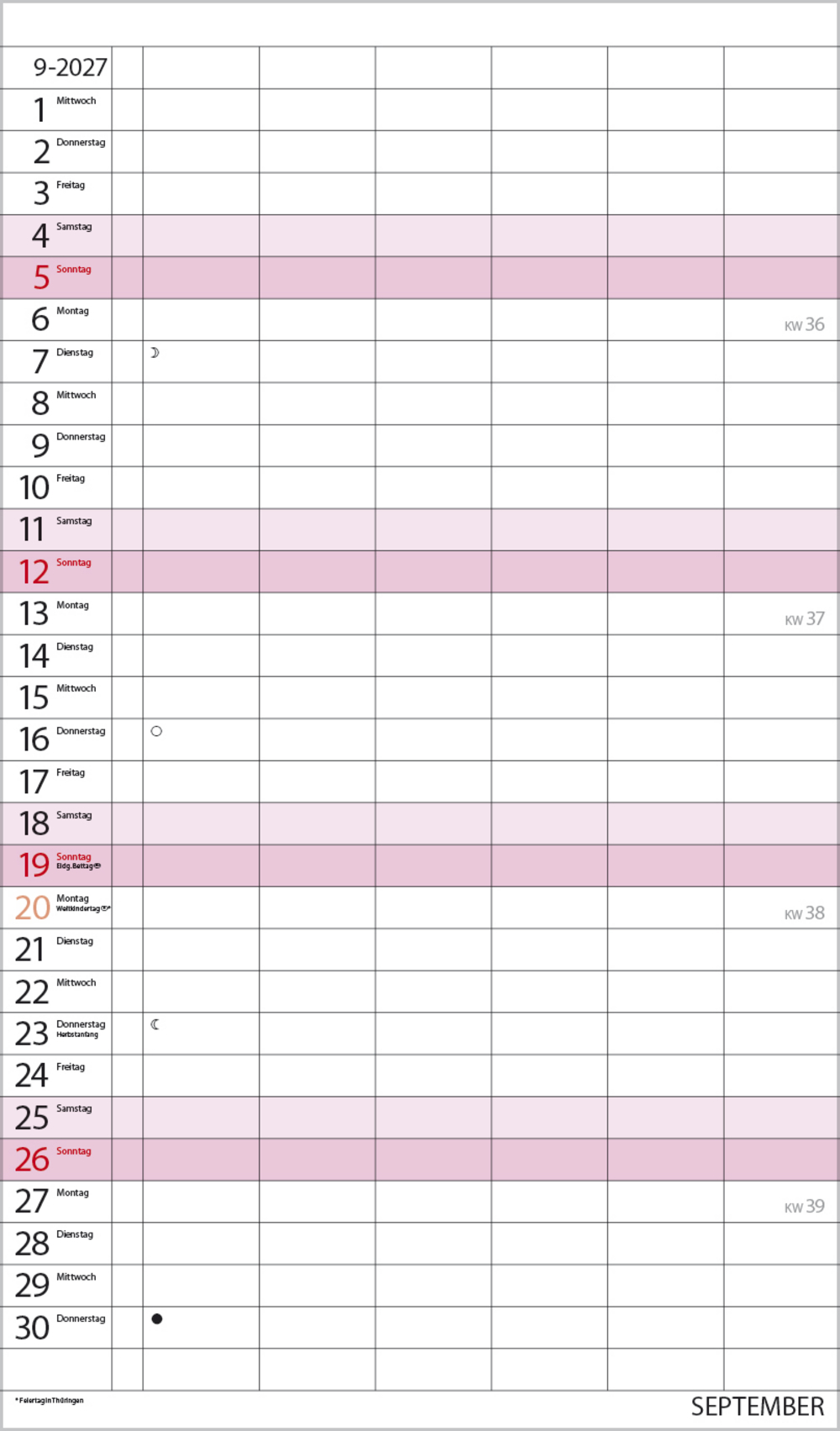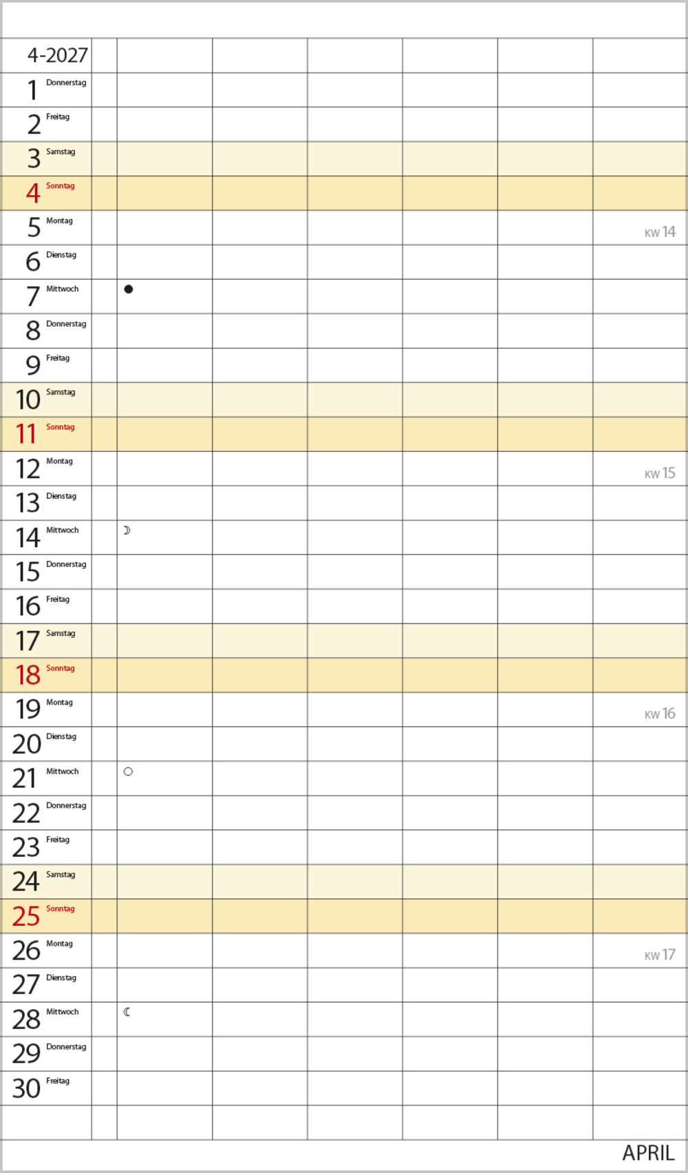 - Terminkalender mit viel Platz für Eintragungen, ohne störende Bilder in den Spalten