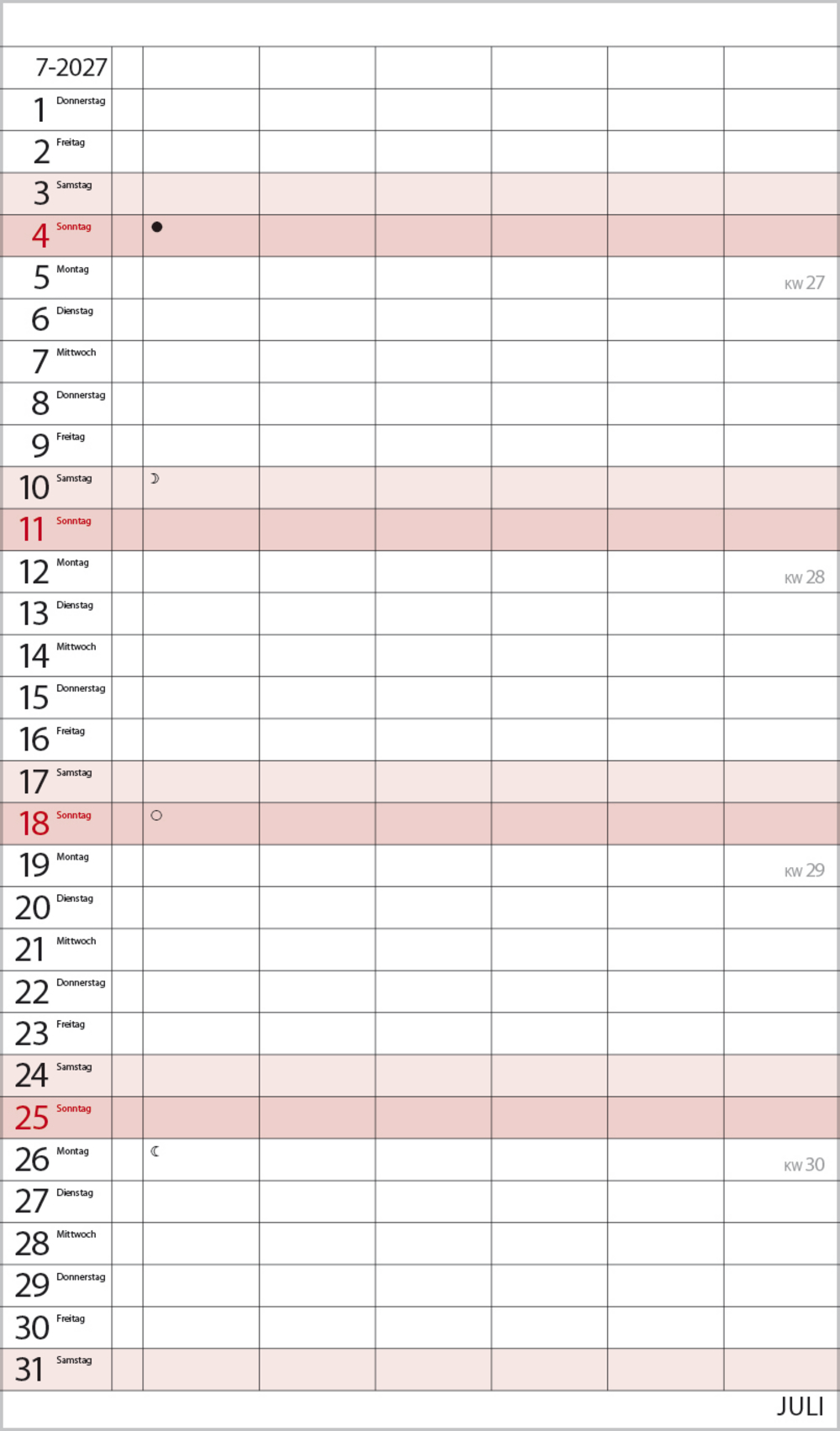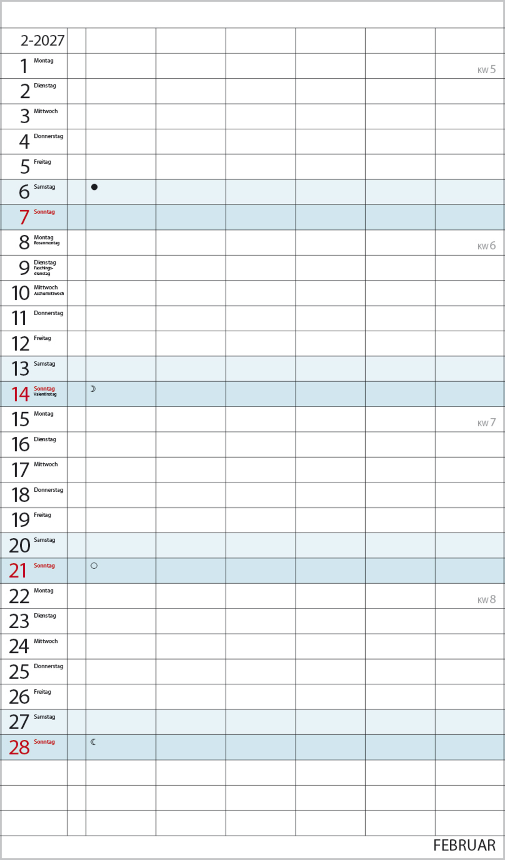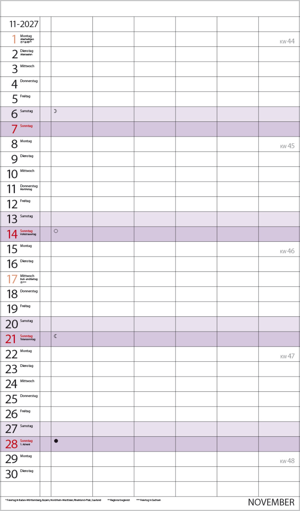 - Terminkalender mit viel Platz für Eintragungen, ohne störende Bilder in den Spalten
