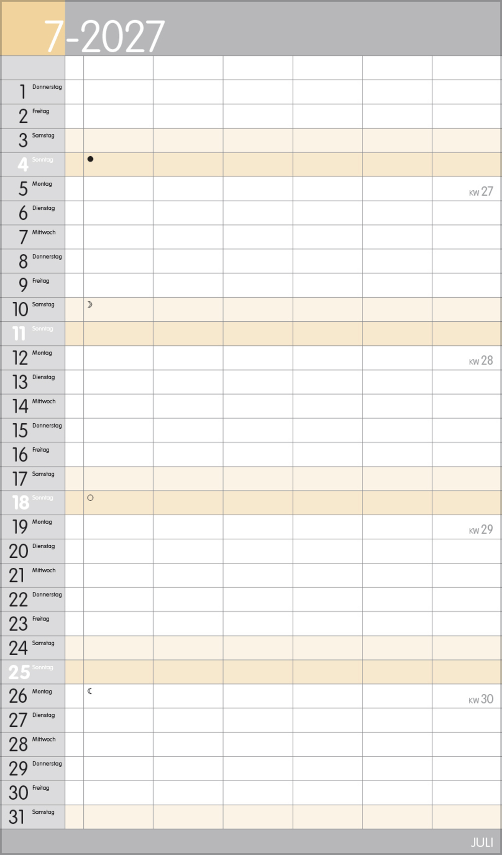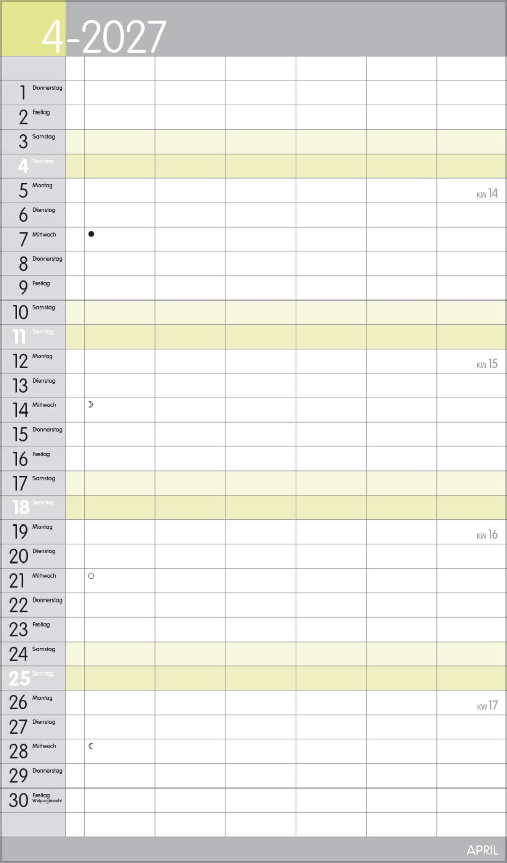 - Terminkalender mit viel Platz für Eintragungen, ohne störende Bilder in den Spalten