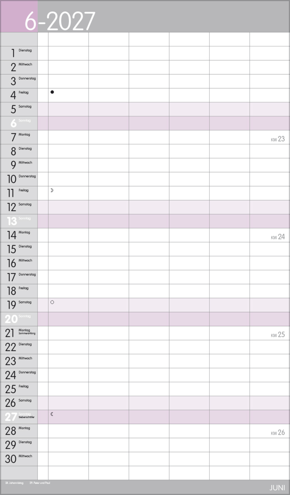 - Übersichtlicher Familienplaner mit 6 großen Spalten; sehr stabile Rückwand; 27 x 46 cm