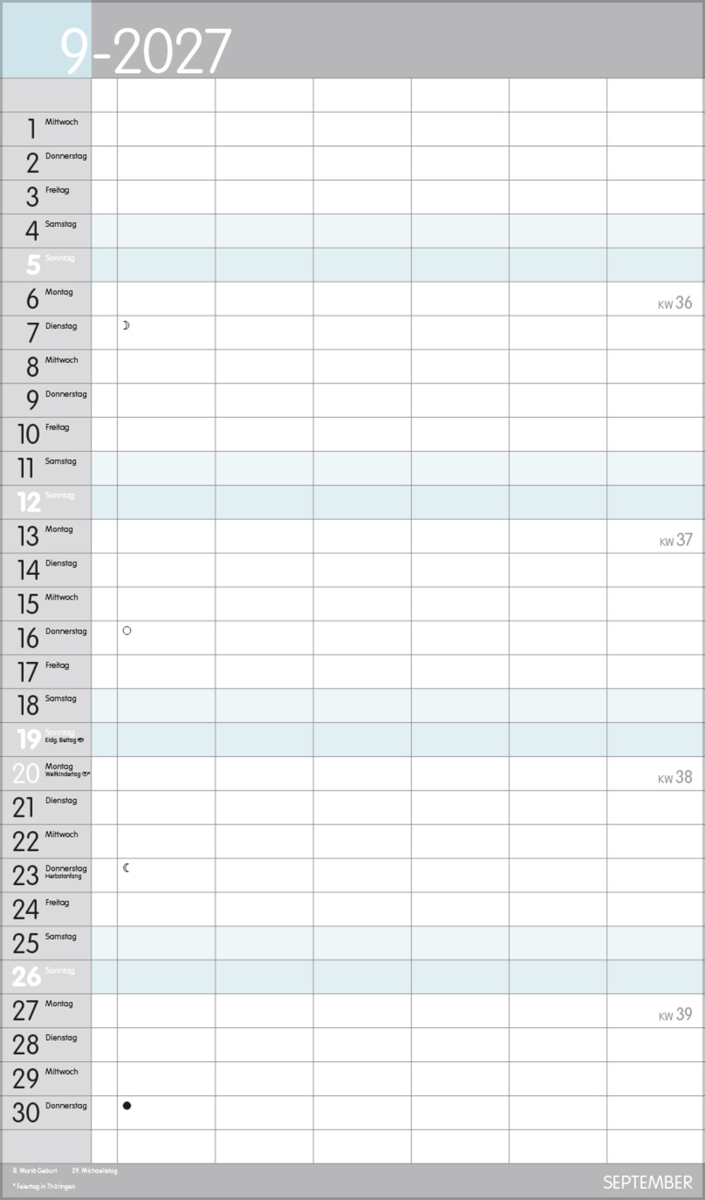 - Praktische Zusatzspalte für Ferien, Müll und weitere Aktivitäten
