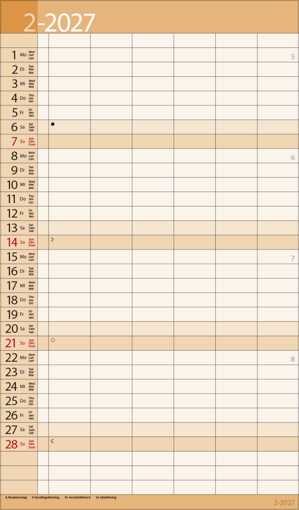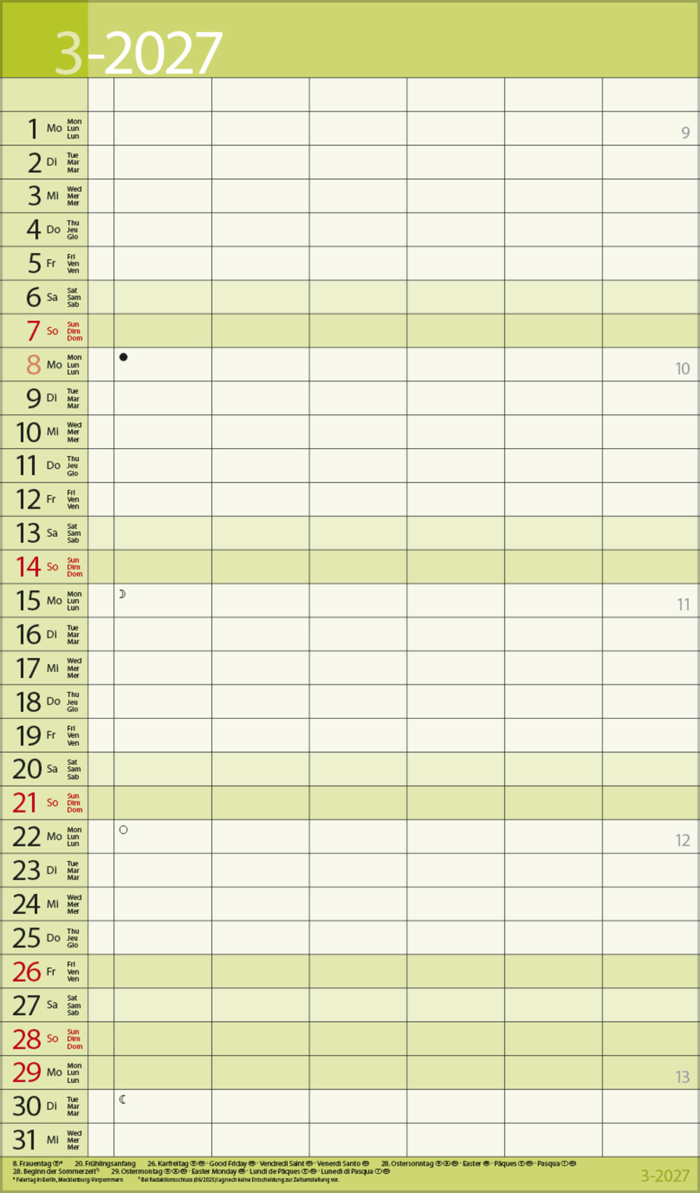 - Terminkalender mit viel Platz für Eintragungen, ohne störende Bilder in den Spalten