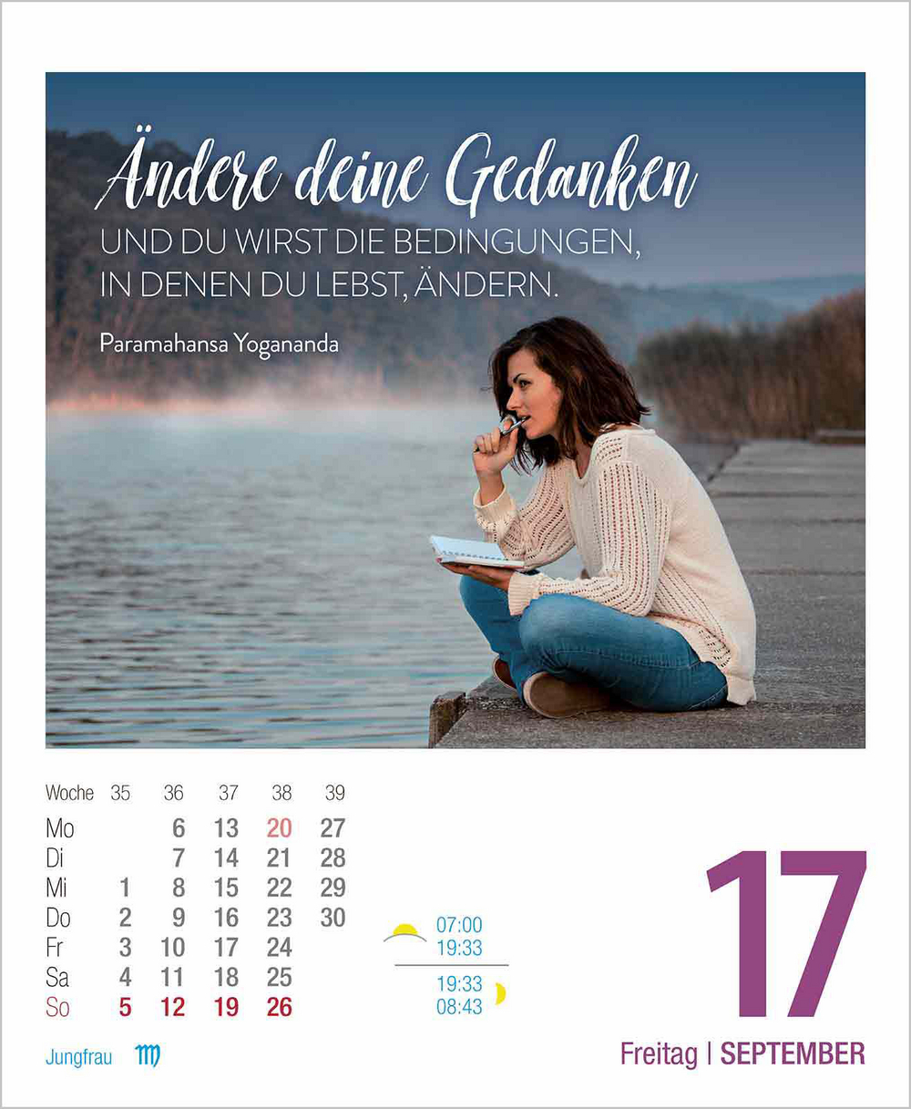 Dieser Kalender ist ein dezentes Plädoyer für ein Leben im Einklang mit der Natur und dem menschlichen Bedürfnis nach Entspannung und Zufriedenheit im Alltag. Der ideale Jahresbegleiter für alle, die sich auf dem Weg der Achtsamkeit in ein bewusstes und glückliches Leben befinden.